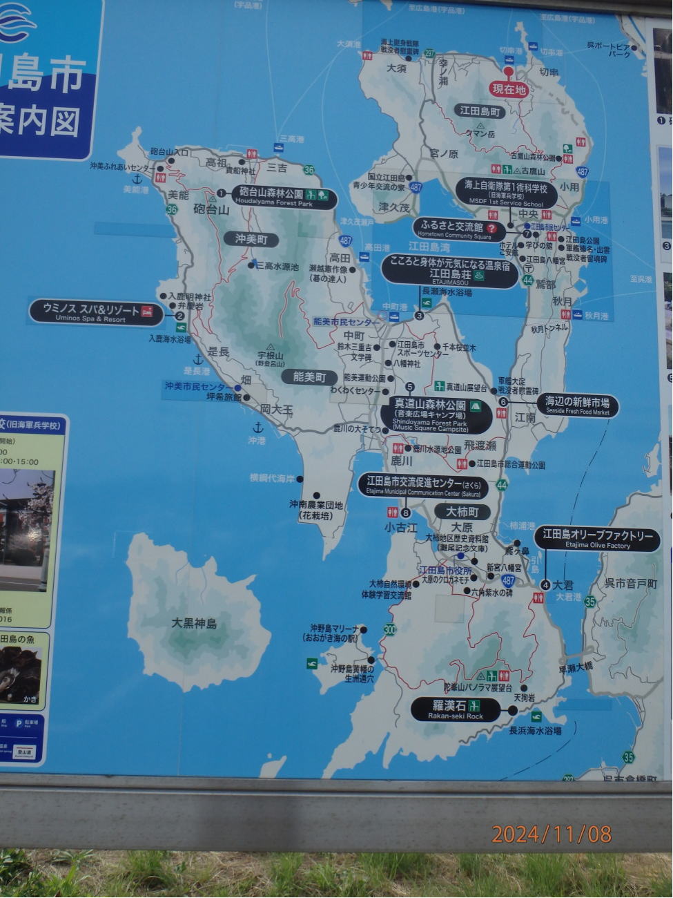 | 瀬戸内をのたりのたりと島巡り旅 2024年11月5日(火)から11月11日(月) 今年は年初から何かと忙しく心苦しい日々でした。春には多くの事を整理しました。その上、初めて琵琶一サイクリングをしたのが60年前でしたから、今年はその最後として1日で走行するために練習をしていました。しかしあまりの暑さに道路を走ることは無理で、ローラー台での練習に切替ました。11月の中旬くらいに走れればと思っていたのですが、結果的にはそれも叶わないことに。 ならば車旅をと思いますが、駐めて散歩ができる気候を待っているとやっと今頃に。まあ 何事もそう都合良くはならないものですね。 11月5日(火) 今年の夏は異常な暑さでした。9月になれば過ごし易くなるかと思っていましたが期待外れ。あまりの暑さでは車を駐めて散歩することは難しくなります。そこで帰宅日は格別に決めずに、11月5日から瀬戸内の島々をゆっくりと巡る旅にでかけました。 こんな旅は予定をたてずに出かけるのが一番だと思うのですが、なかなか習慣を切り捨てて行動するのは難しいものです。当初に何気なく考えていたのは、有料道路は使わずに無料の橋が架けられている島々を訪れ、夜は海抜の高い場所で夜景を堪能しながら眠るというものでした。しかし地図を見ながら高台の展望所・風呂・トイレ・食べ物の調達と考えているとかなり行動が制約されます。色々と考えているとわけが分からなくなってしまい、 「まあいいか適当に何とかなるだろう」 というのが結論でした。 前日にナビに入れたのは目的地の「備前日生大橋・有料道路は不使用」だけでした。出発は5日朝9時40分過ぎ、走り始めて凡そ30分程もすると走った事の無い道路や景色です。あ~!いつの間にかこんなに変わっているんだ、というのが実感。自宅から約60㎞走るのに2時間かかっていたことがコンビニの領収書で判ります。しかも道中の景色は殆ど初めて見るものでした。何かしら今のナビは時刻的な道路の混雑具合も判断して1分でも2分でも早く到達できる道を選択しているようです(時代的に優れ物?)。お蔭で思いがけず 「デカンショ街道」 の一部を走りました。子午線標識石柱の写真は撮り損ね。 備前日生大橋を渡ったのは15時過ぎ鹿久居島から更に頭島へ渡れば展望台があります。結構狭い道路です。郵便局があったので上に車を駐める場所が在るか尋ねると、OKでした。路肩を外さないよう慎重に登って行くと、車のすれ違い用に三角形のちょっとした道路拡幅部分があります。この先にもう少し広い場所があるのかと思い更に10㍍程上り坂を進むと、下り坂になった直ぐ先に、私の車と同じくらいのセダンが方向転換をして戻ろうと、青年5人グループが大騒ぎをしています。どうしたのか?尋ねると、「この先は道幅は何とかなるけれど、段差がキツすぎて車体の底を擦るので行けない」 と。私は車を一旦拡幅箇所へ戻して駐車。展望台に上がって写真を撮って戻ると、未だワイワイとやっていました。その間に道路脇の溝と斜面側の路肩がしっかりしているかどうかを確認。彼らの応援も得て無事戻ることができました。 ありがとう!。でも、もう二度と来ることはでき無いと思います。 ![]() |